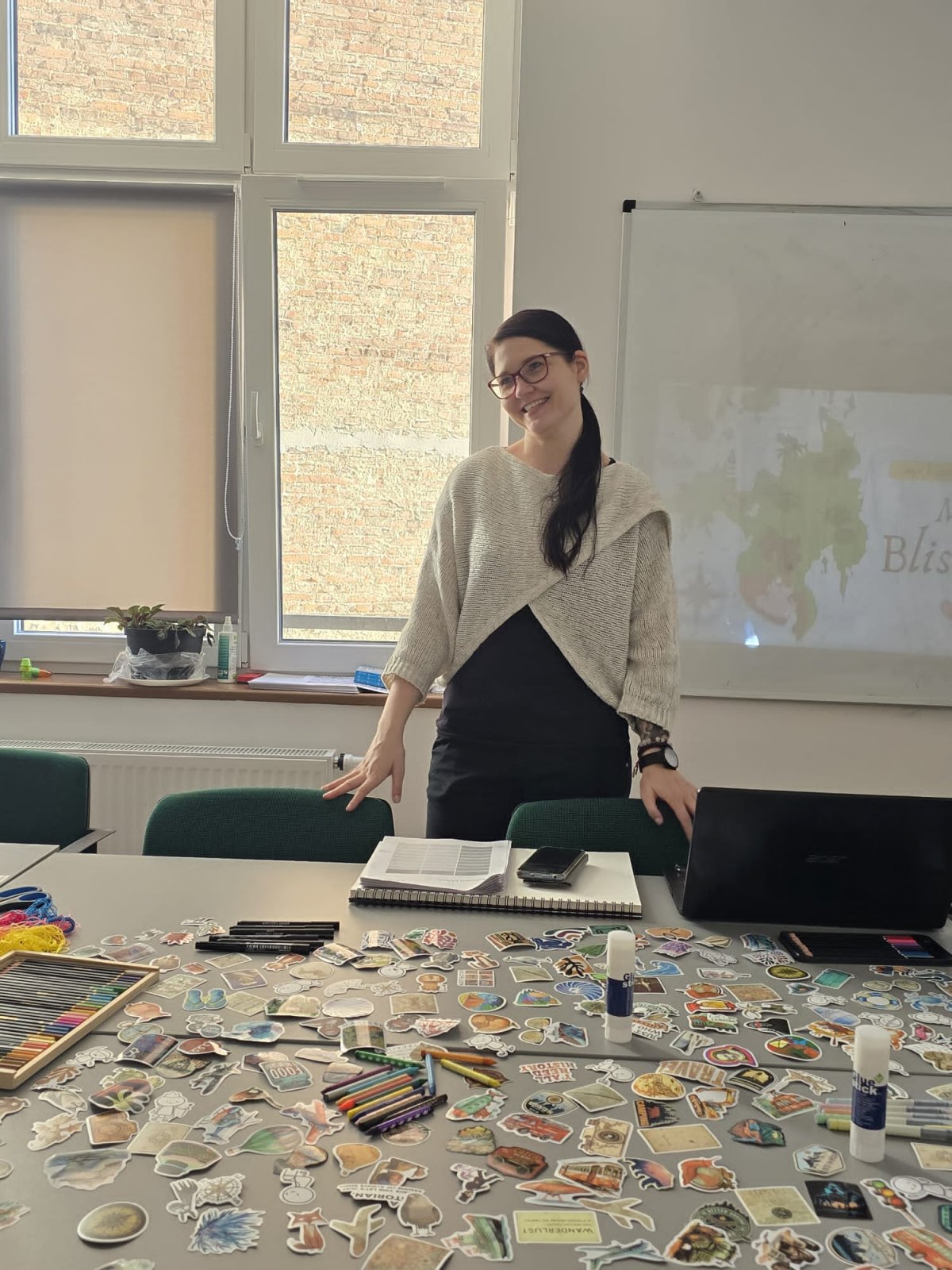 Regularnie prowadzę także warsztaty i szkolenia, występuje na konferencjach i spotkaniach psychoedukacyjnych. Jestem także autorką Kryzysownika - praktycznego workbooka, który wspiera osoby w radzeniu sobie z kryzysami. (https://widzewiecej.pl/produkt/drogowskaz-w-kryzysie-workbook/)